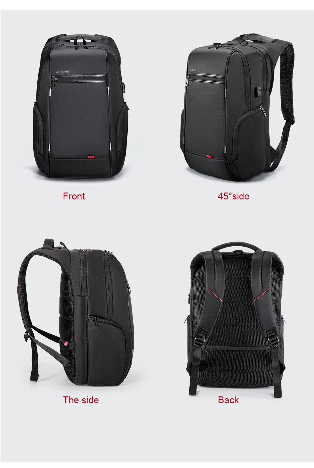 Kingsons mochilas masculinas 15 ''17'' laptop mochila carregador usb mochila anti-roubo para adolescente moda masculina viagem